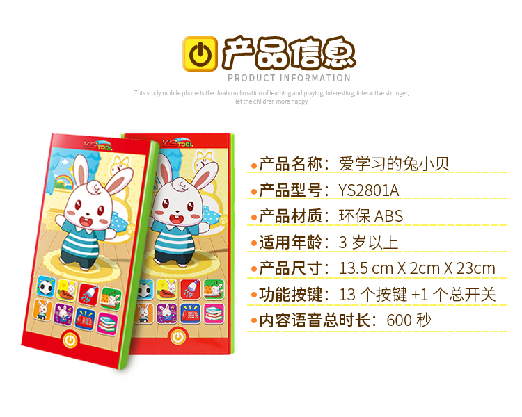YS2801A 愛學習的兔小貝學習手機