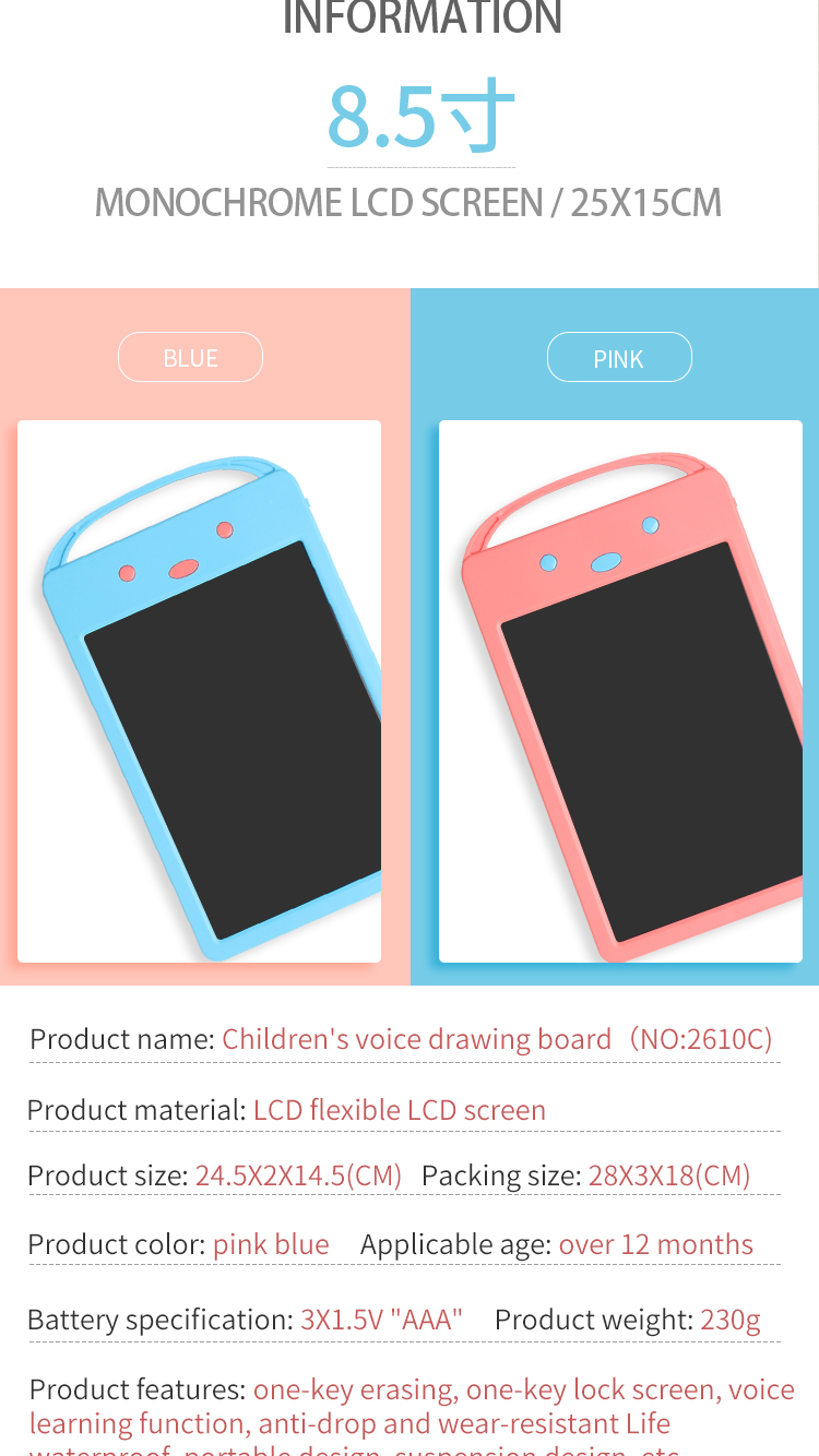 YS2610C 8.5寸語音液晶電子寫字板學習機
