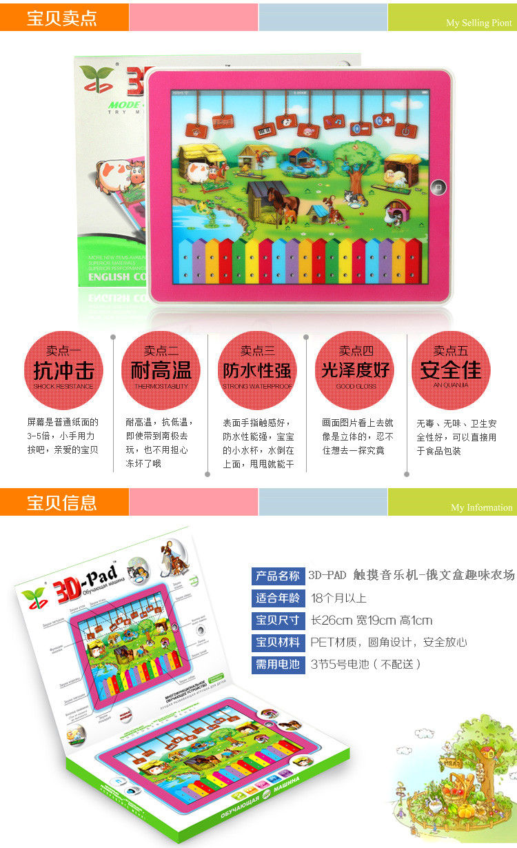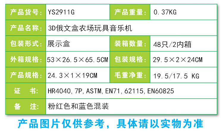 YS2911G 3D俄文盒農場玩具音樂機