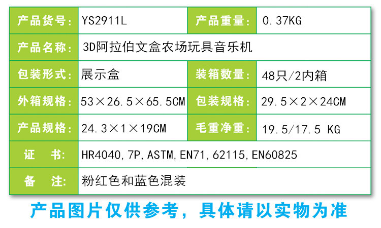 YS2911L 3D阿拉伯文盒農場玩具音樂機