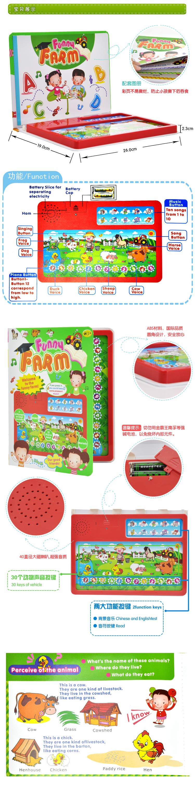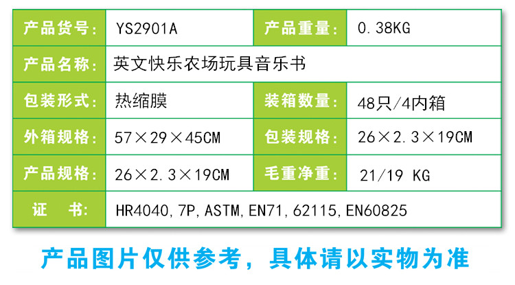 YS2901A 英文快樂農場玩具音樂書