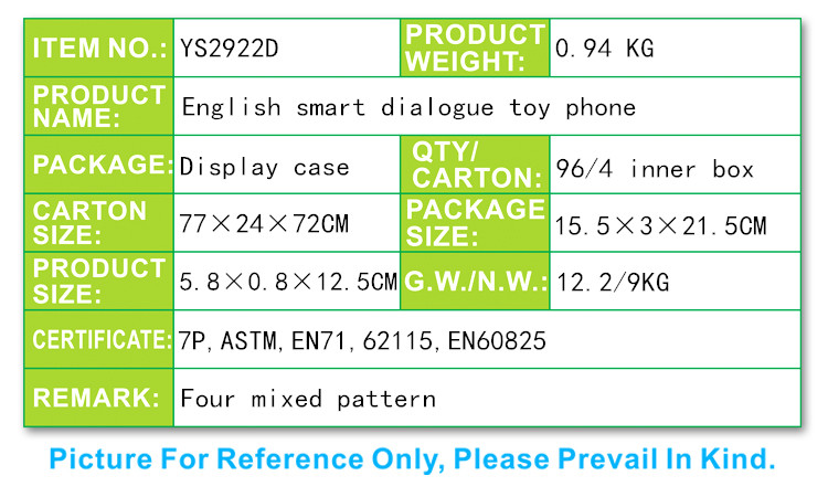 YS2922D 英文智能對話玩具手機